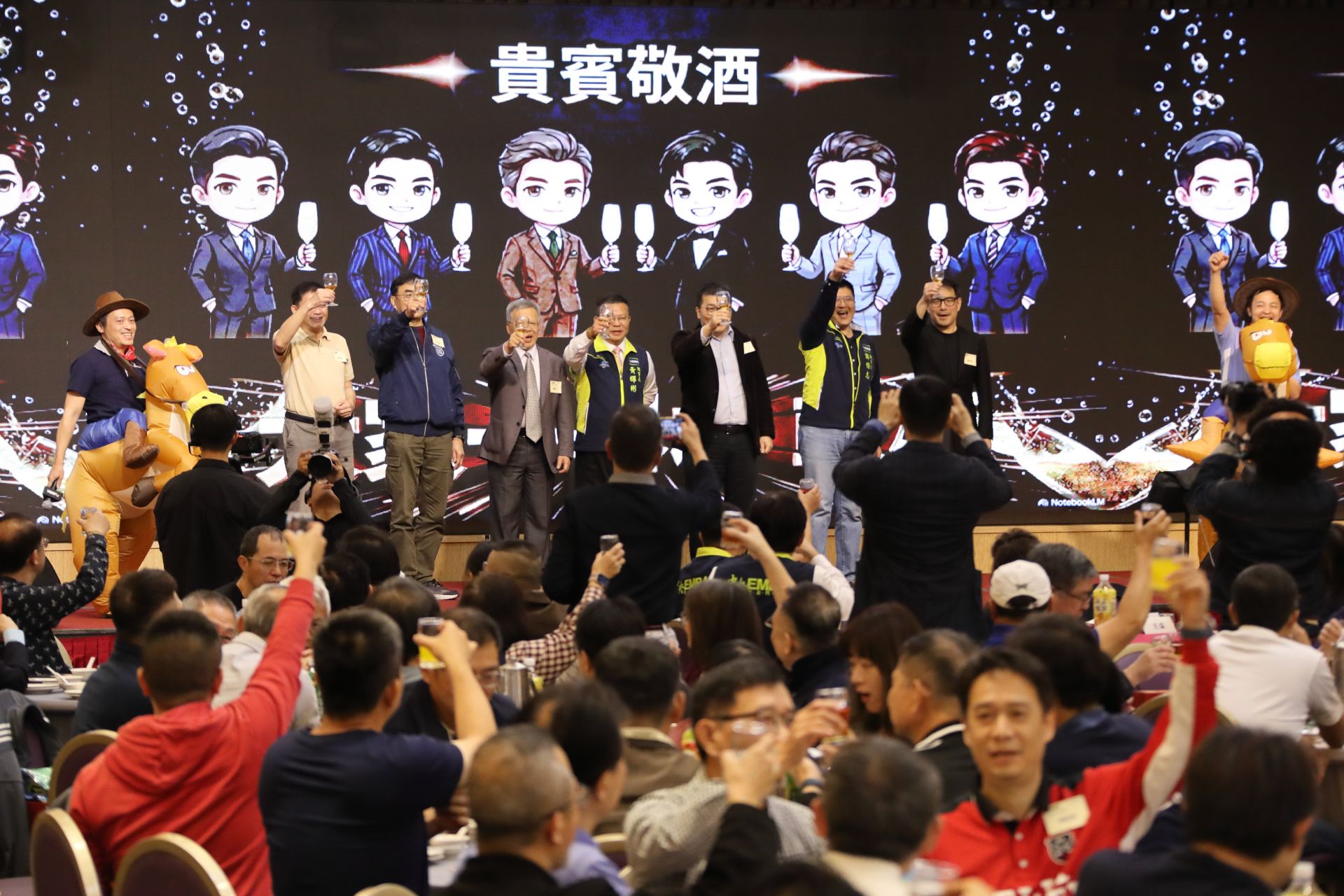 酒會節目精彩連連,全場笑聲不斷。114級在校生率先登台,以充滿活力的「騎馬裝」熱歌勁舞炒熱現場氣氛,讓台下學長姐看得又叫好又回味;緊接著,EMBA校友同學會旗下11個社團輪番上陣,展示近期的活動成果與社員風采 - 高爾夫球社在球場上的揮桿英姿、薩克斯風社在舞台上的音符流轉、登山社在旅途中的足跡故事、保齡球社在球道上的精準投球與歡呼笑聲、壘球社在球場上的揮棒快感與隊友默契、籃球社在場上的奔馳身影與熱血拚勁、Young跑社在賽道上的堅定步伐與挑戰自我、吉他歡唱社在琴弦間流淌的歌聲與共鳴、愛心公益組在校園與社區裡播撒溫暖的身影與足跡、單車社在山路間踩踏的律動與迎風暢行......,都讓不少坐在台下的校友忍不住手機拍個不停,嚷著「下學期我也要加入!」